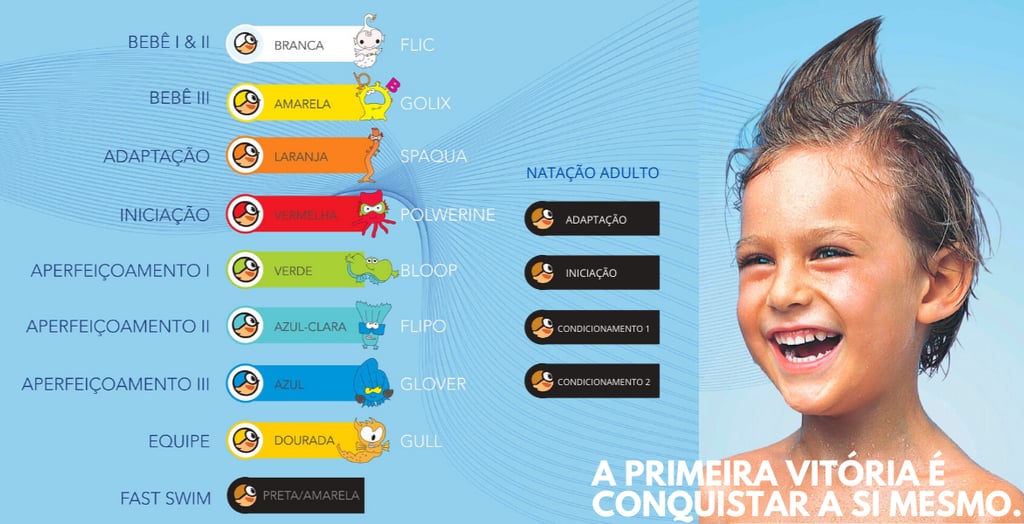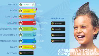 Através da nossa organização de níveis e dos nossos materiais pedagógicos (flâmulas, passaporte e patches), conseguimos explorar o desenvolvimento do comportamento e os valores virtuosos dos alunos, aliados ao processo de ensino da natação. Contribuímos com o desenvolvimento infantil sistêmico a partir das aulas de natação e potencializamos a motivação das crianças através do sentimento de conquista